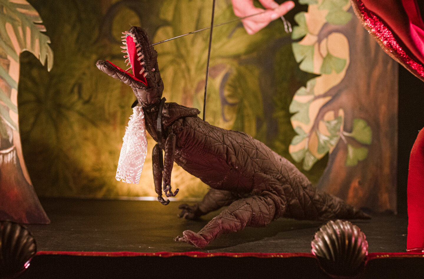 Auf einer intimen Bühne erzählt das Stück von Aufstieg und Fall der Dinosaurier, die dabei auf eine humorvolle Weise schrumpfen. Monument trifft auf Miniatur, Musiktheater auf Figurentheater.